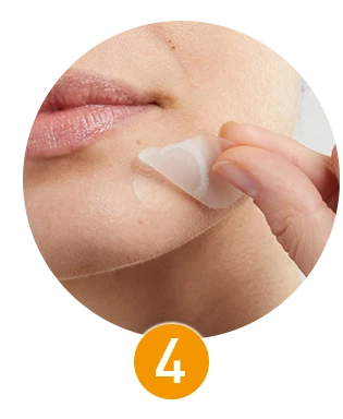 Verwijder de doorzichtige papieren applicator voorzichtig. De patch blijft nu zitten. Er kan make-up over de patch worden aangebracht.